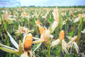 NGGAK nyangka samak sekali ya.. tanaman yang biasanya bikin perahu mogok di sungai bisa jadi bintang utama di ladang jagung? Yup, eceng...